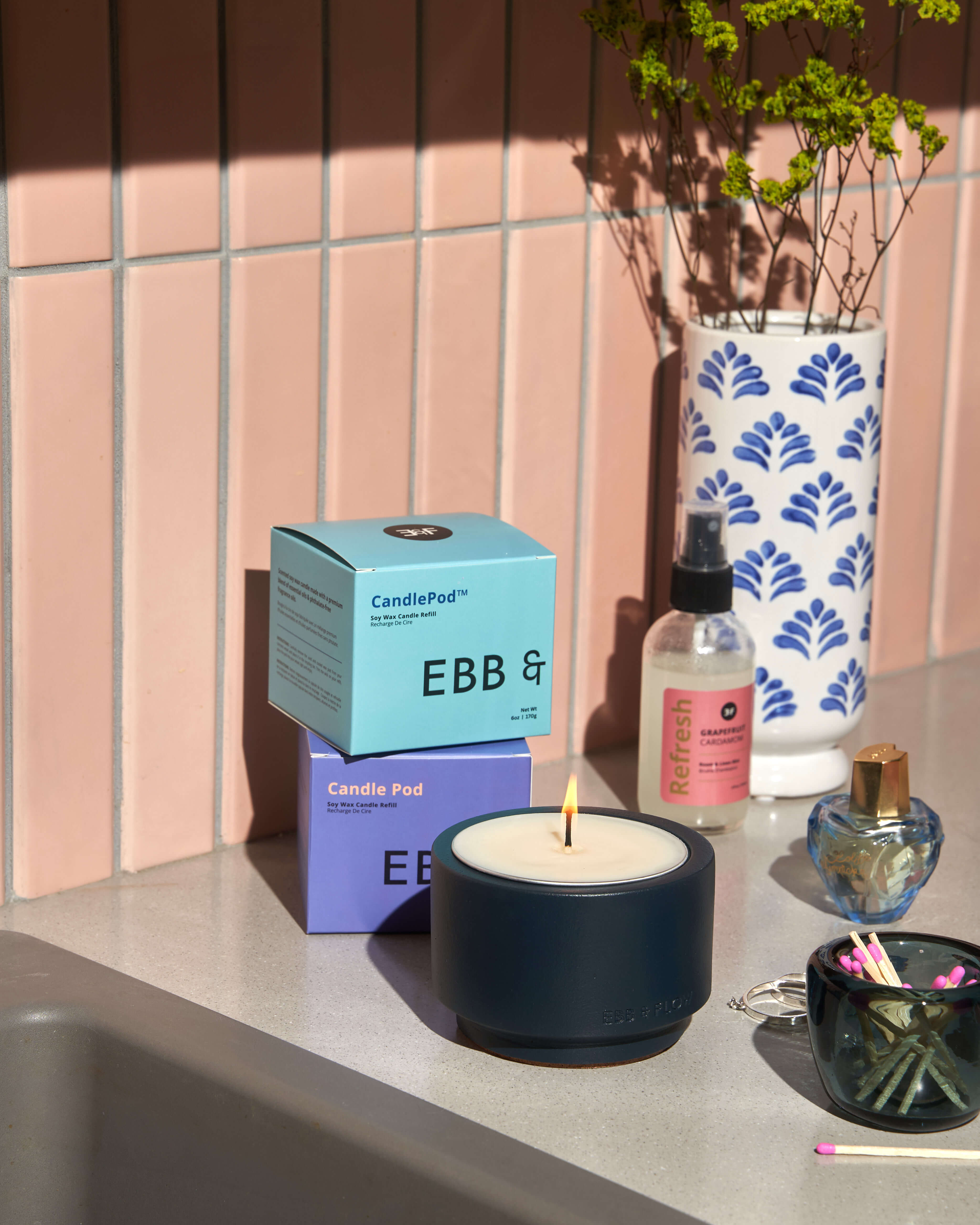 Meticulously crafted in small batches and housed in a handcrafted vessel, our Refillable Soy Wax Candles are designed to elevate any space. When you’re ready for a new scent, simply insert a CandlePod™ Refill for a seamless, mess-free transition.